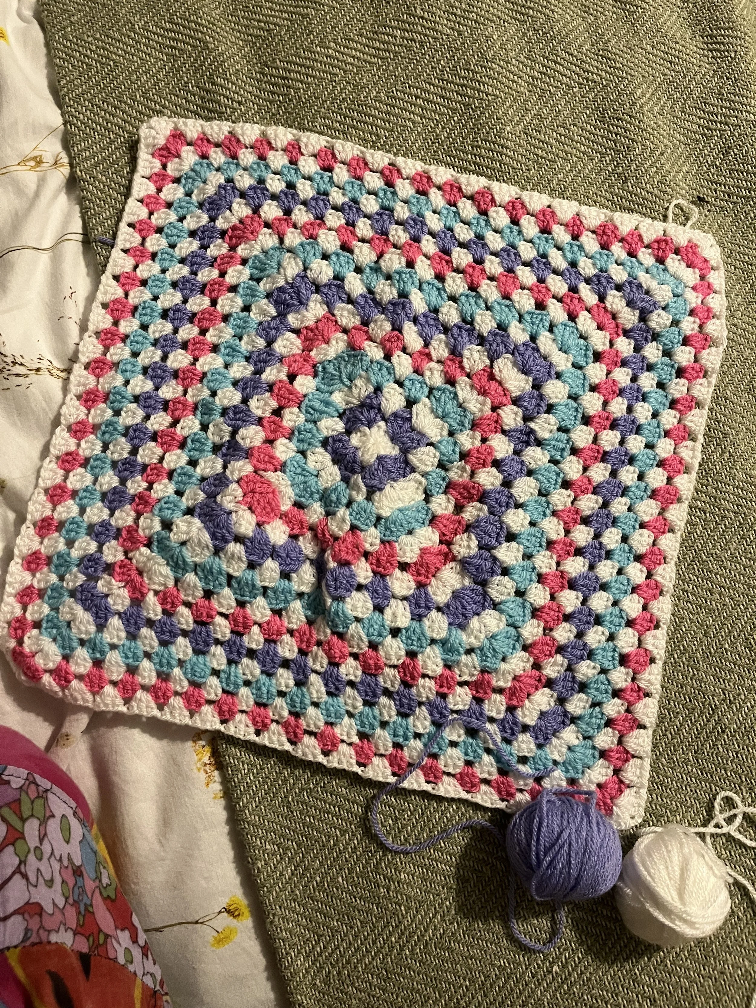 Crochet has become an important part of supporting my own wellbeing. The process of creating something feels grounding, meditative and offers a distraction from screens on long journeys.